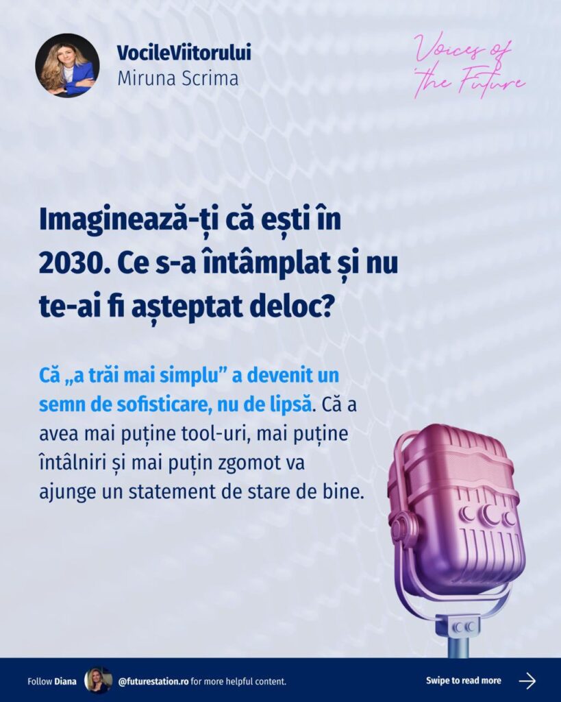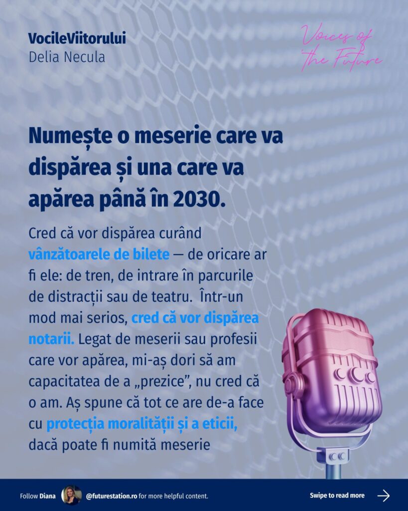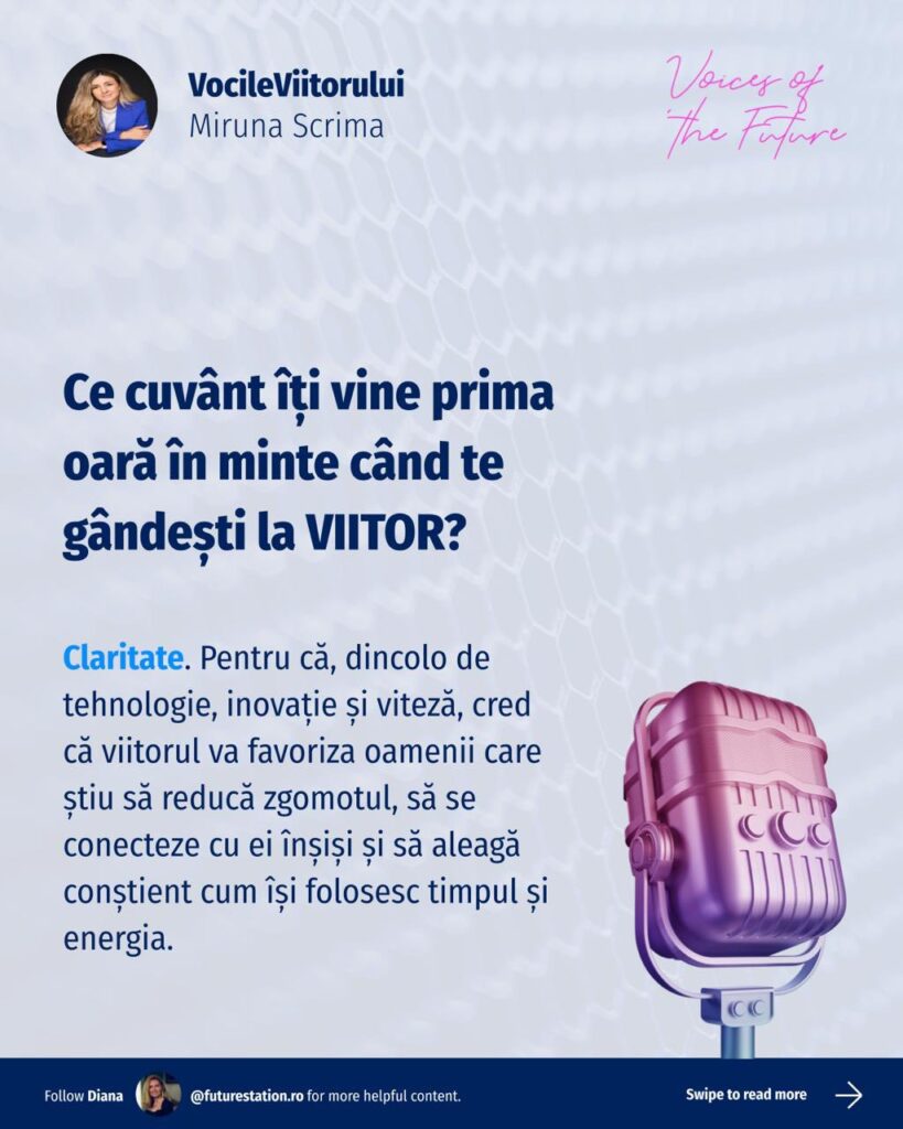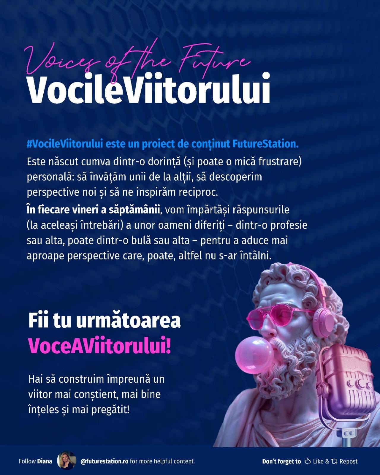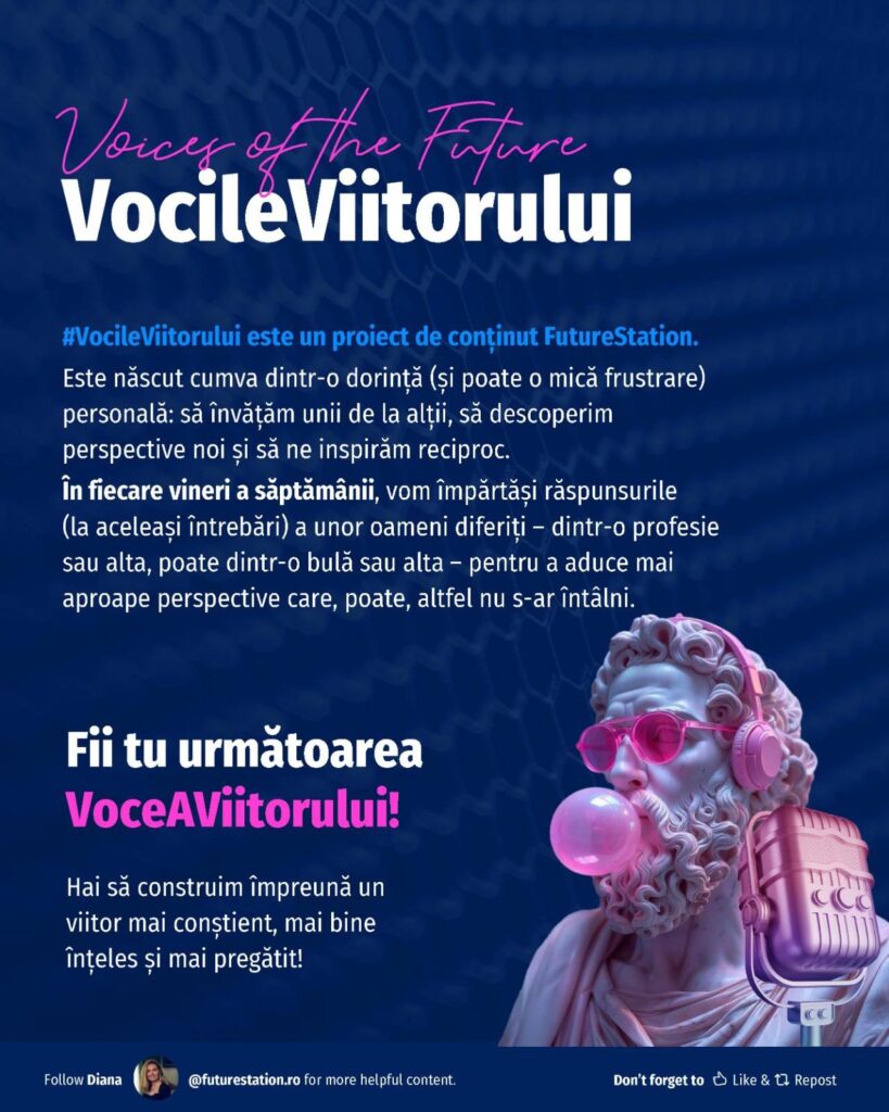 #VocileViitorului este o inițiativă Future Station care adresează întrebări simple despre viitor, gândite pentru a deschide o conversație amplă, relevantă pentru oameni din diverse domenii. Vrem să aflăm lucruri unii de la alții, să înțelegem diferite perspective și să ne inspirăm reciproc!