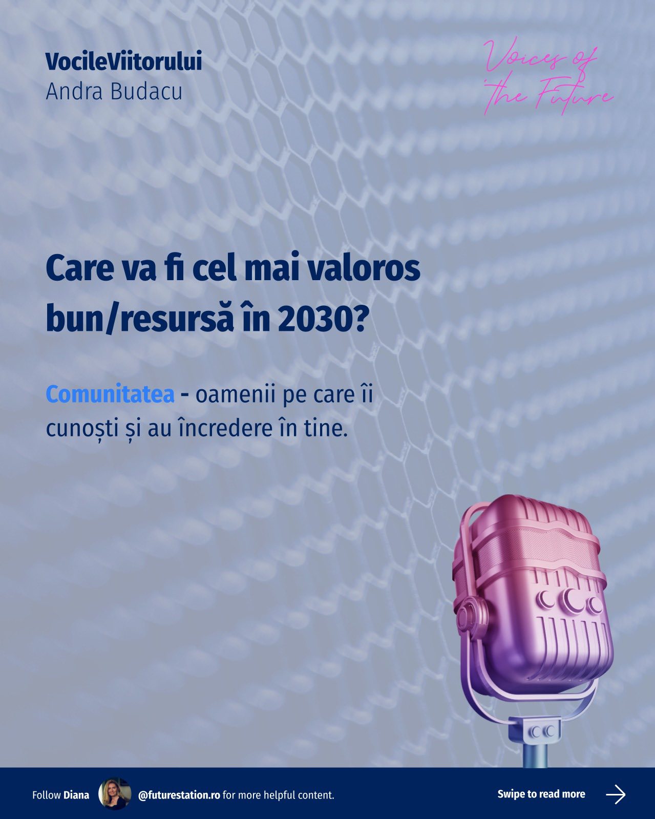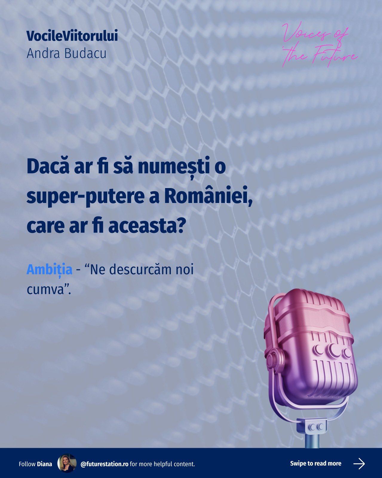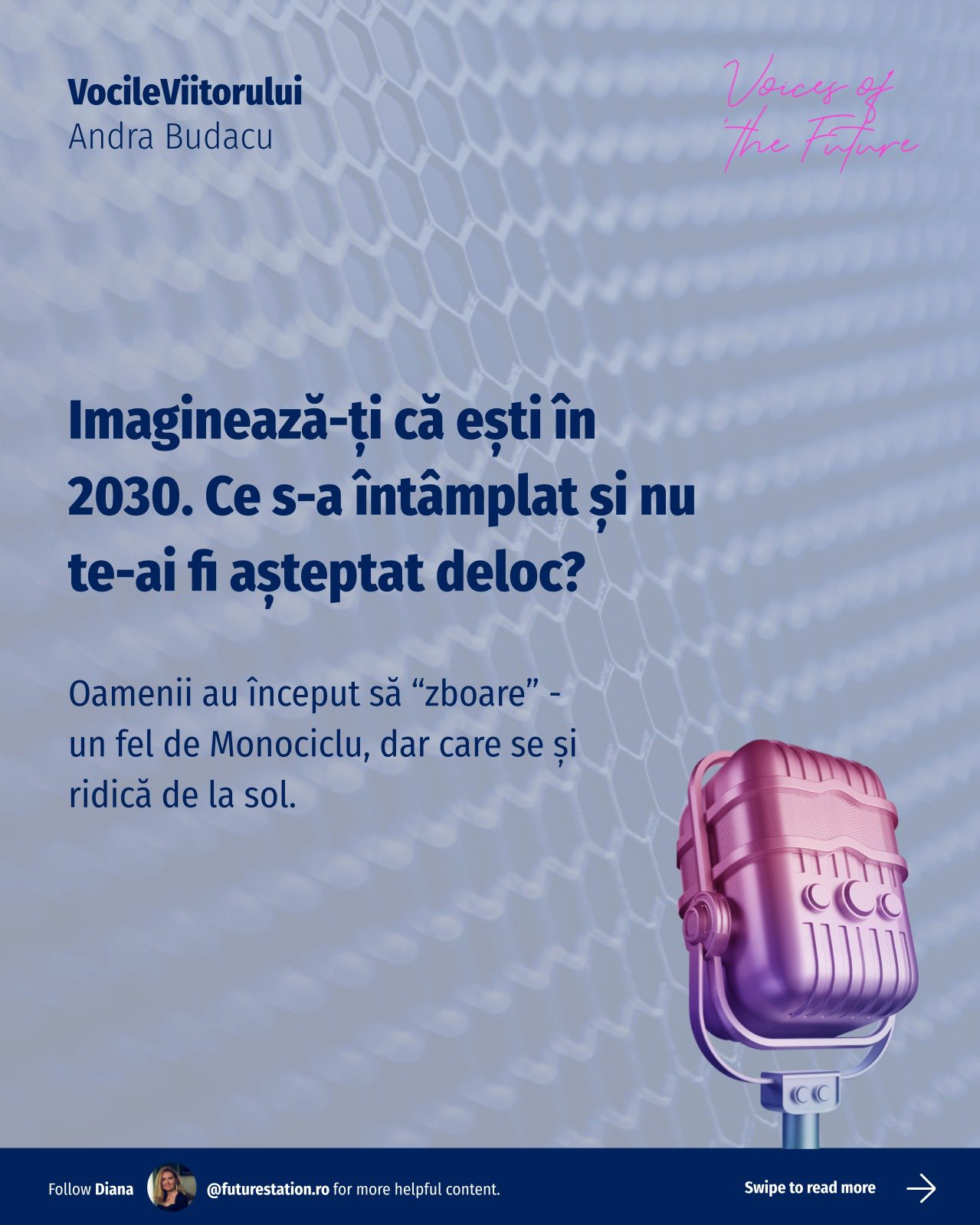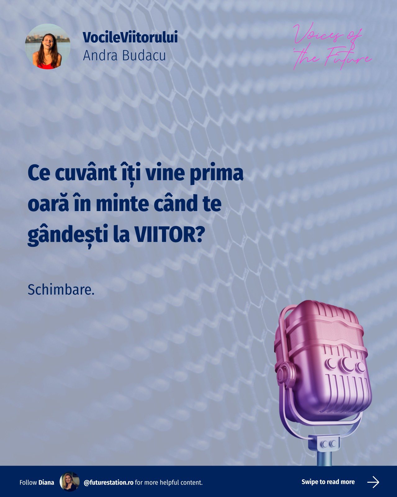 #VocileViitorului este o inițiativă Future Station care adresează întrebări simple despre viitor, gândite pentru a deschide o conversație amplă, relevantă pentru oameni din diverse domenii. Vrem să aflăm lucruri unii de la alții, să înțelegem diferite perspective și să ne inspirăm reciproc!