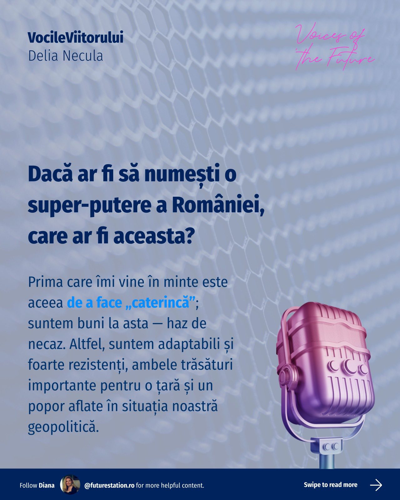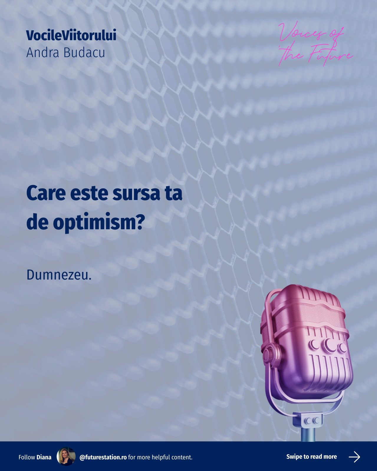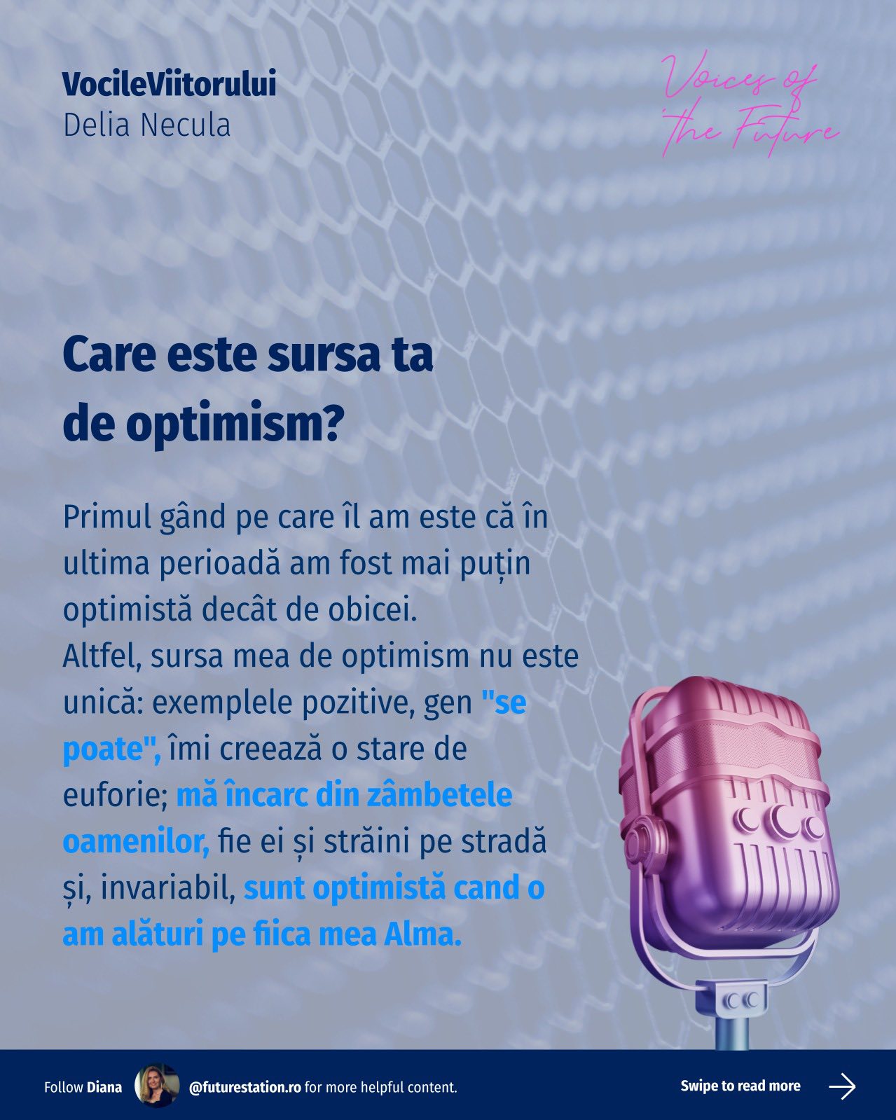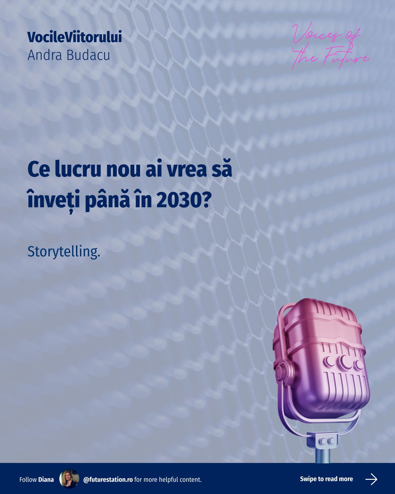 #VocileViitorului este o inițiativă Future Station care adresează întrebări simple despre viitor, gândite pentru a deschide o conversație amplă, relevantă pentru oameni din diverse domenii. Vrem să aflăm lucruri unii de la alții, să înțelegem diferite perspective și să ne inspirăm reciproc!